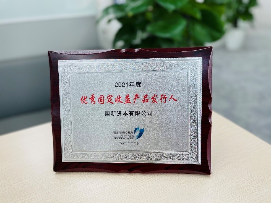 近日,国新资本荣获深圳证券交易所颁发的“2021年度优秀固定收益产品发行人”奖,这是国新资本连续第三年荣获该称号。
