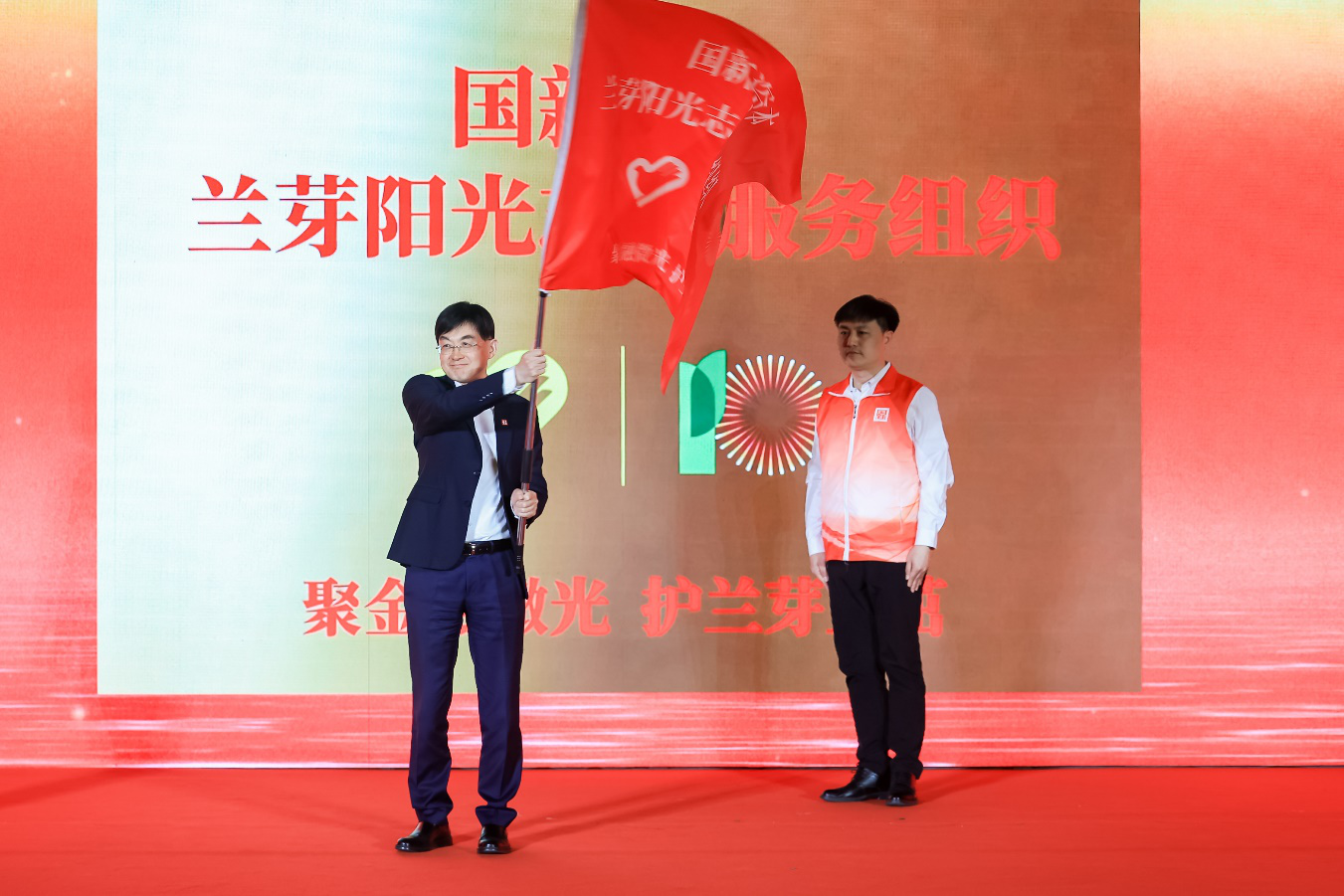 侯晓为国新资本兰芽阳光志愿服务组织授旗